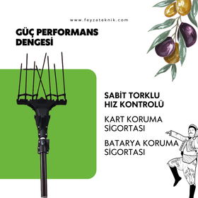 Zeytin hasadını hızlı, verimli ve zahmetsiz bir şekilde tamamlamak isteyenler için tasarlanan Taraklı Çırpıcı Zeytin Hasat Makinesi, profesyonel ve hobi üreticilerinin tüm ihtiyaçlarına eksiksiz cevap verir. Gücünü güvenli ve uzun ömürlü LiFePO₄ (Lityum Demir Fosfat) batarya teknolojisinden alan bu sistem, yüksek performansı düşük ağırlıkla birleştirerek hasadı en kolay hâle getirir.